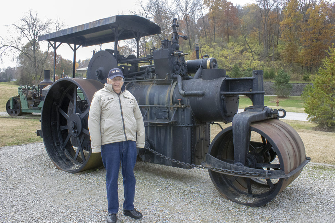 Tim LaGaly of TJL Construction, Inc. stands by some of the metal pieces from the Mine Train that he is working on for the restoration. Photo by Mark Eades